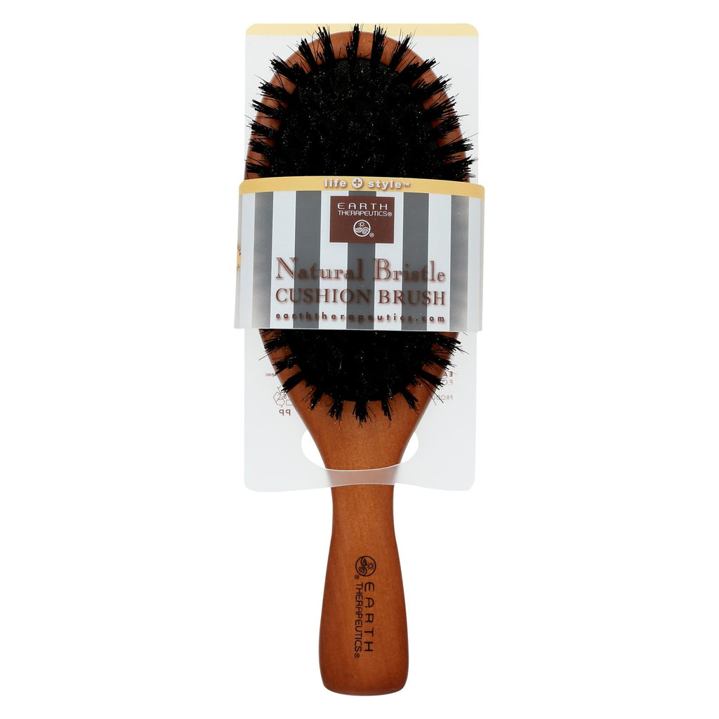 Earth therapeutics natural bristle cushion brush description: earth therapeutics brings professional grade grooming to your fingertips. Constructed of the finest quality natural bristles set in a soft pneumatic air cushion base, this hair brush gently massages while evenly distributing the scalp's natural oils along the hair shaft and cleaning the hair follicles. Regular brushing will set hair to its naturally soft, lustrous sheen- healthier, more manageable, easier to style. 9.5 l x 3.5 w. Disclaimer these statements have not been evaluated by the fda. These products are not intended to diagnose, treat, cure, or prevent any disease.