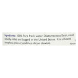 ingredients : 100% pure fresh water diatomaceous earth;mined naturally milled and bagged in the united states. It is unheated amorphous non-crystalline silicon dioxide