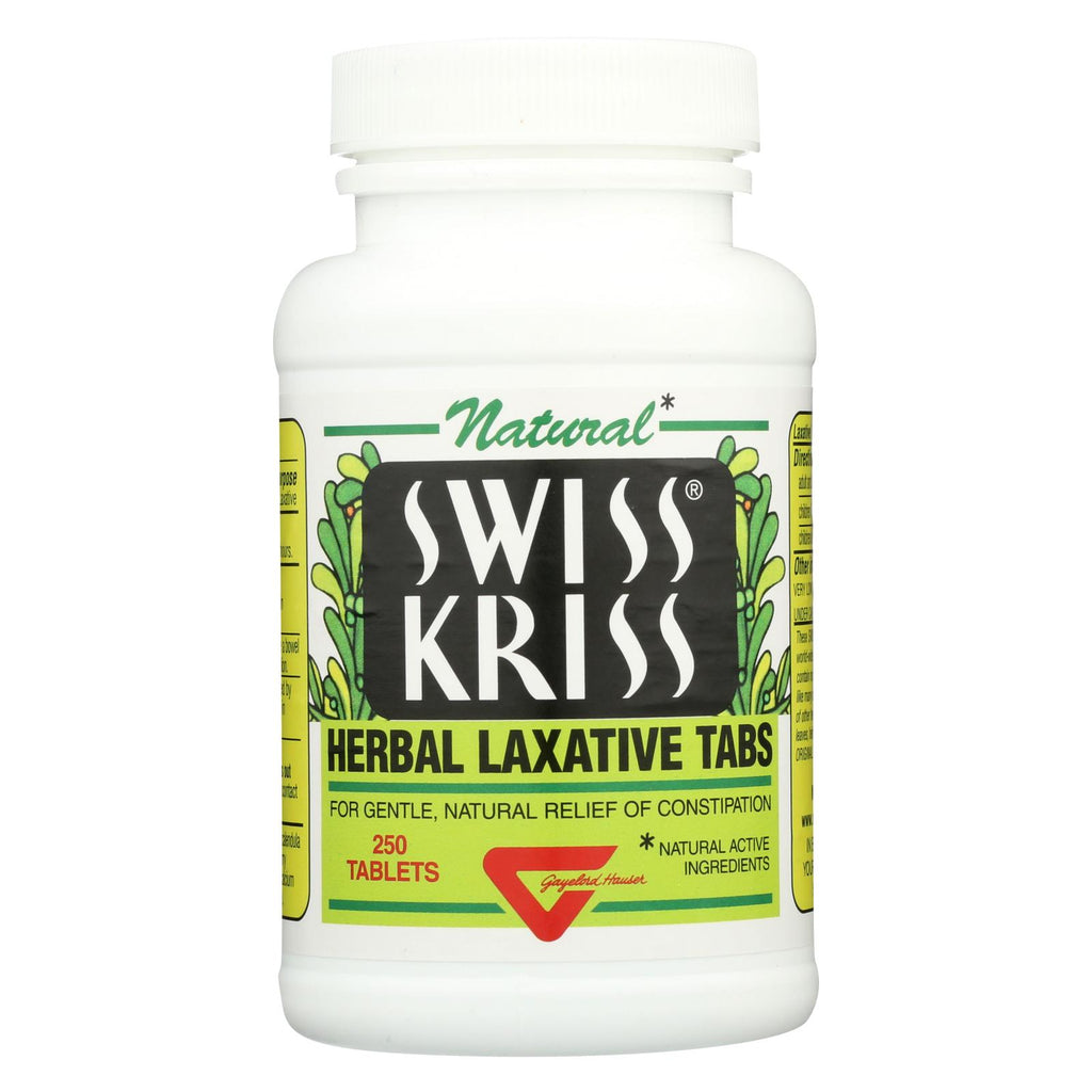 Swiss kriss herbal laxative tabs are designed to help you produce a bowel movement within 6 to 12 hours of consumption. Use this product to help with occasional relief of constipation, and do not take for longer than one week. This product comes in a bottle containing 250 tablets and is designed to provide smooth, non-irritating results.