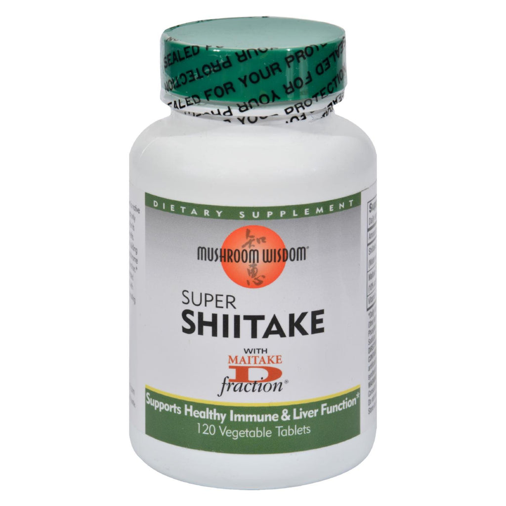 Mushroom wisdom super shiitake description: with maitake d-fraction to support healthy liver function vegetable caplets shiitake mushroom, very popular worldwide as an edible mushroom, has a history of medicinal use dating as far back as the ming dynasty (1368-1644) in china. Shiitake is used to support healthy liver functioning and to maintain a healthy immune system. Super shiitake is a full spectrum product processed with both quality extract and fruit body of lentinus edodes, enhancing its power with maitake d-fraction and it bioavailability with bioperine. Free of sugar, yeast, mold, artificial colors, dairy foods, chemical pesticides, fertilizers, mycelium or grain mixture. Disclaimer these statements have not been evaluated by the fda. These products are not intended to diagnose, treat, cure, or prevent any disease.