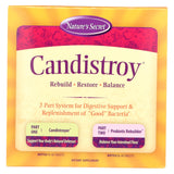 Nature's secret candistroy is a 2-part system specifically formulated to support a healthy digestive system. With probiotic support and detoxifying elements, our formula supports your body's natural defenses while balancing your body's digestive systems. Included is one 60 tablet container of nature's secret candistroy.