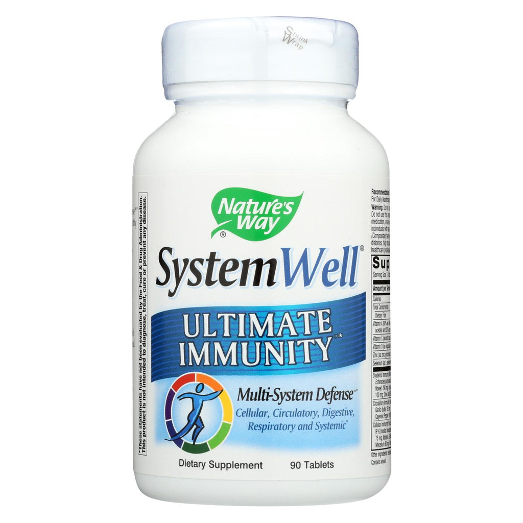 Nature's way dietary supplement systemwell ultimate immunity combines extracts from a wide range of natural sources to create a formula that provides vitamins and minerals that are essential for multi-system immunity. Each tablet offers vitamins a, c and d as well as minerals like zinc and selenium.