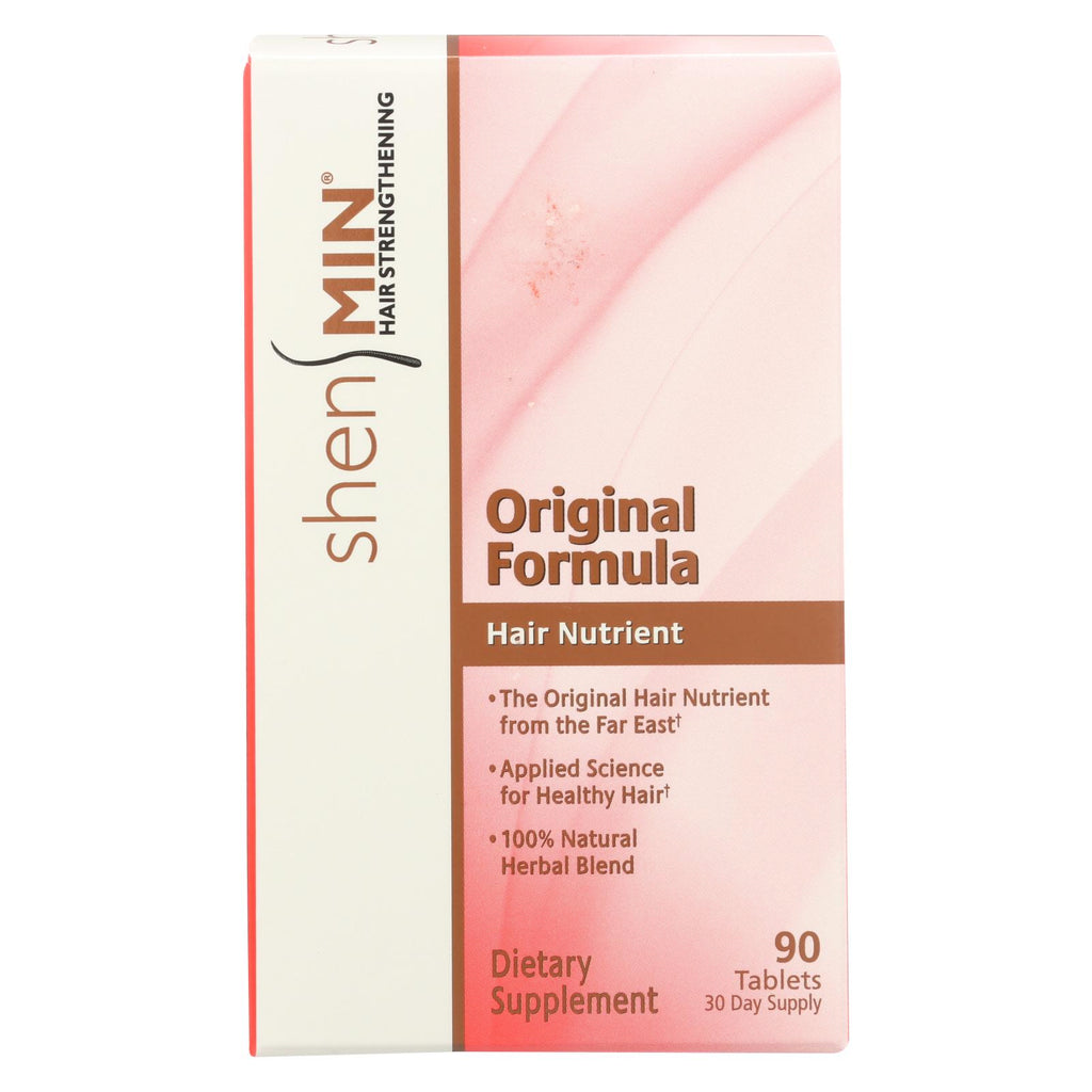 Shen min original formula hair nutrient dietary supplement helps thicken and strengthen your hair for better volume and a richer look. Take one tablet three times a day with a meal, or as instructed by your physician, to help energize your scalp. This 90 count box yields a 30 day supply, and uses a special blend of he shou wu and black pepper extracts to help support your hair. For best results, take this supplement for at least three to four months.