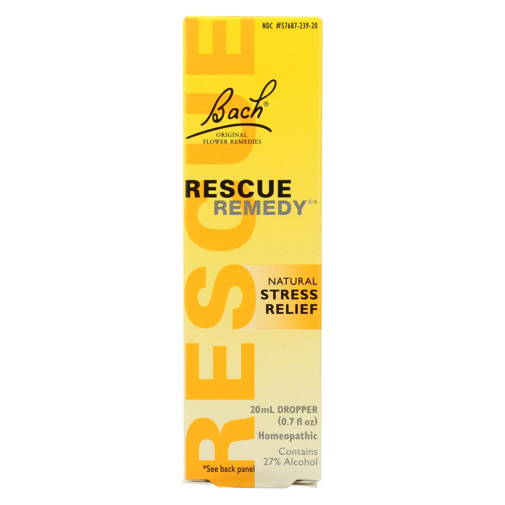 Bach natural stress relief rescue remedy drops are a quick and easy way to ease stress on the go. Take 4 drops directly on the tongue or add to water. These homeopathic dietary supplements provide gentle, non-habit forming, everyday stress relief. These drops are natural, gluten-free and vegan. For children under age 12 or pregnant/nursing women, ask a doctor before use. Each bottle contains 20 ml. Of bach natural stress relief rescue remedy drops. See nutrition facts panel for allergens.
