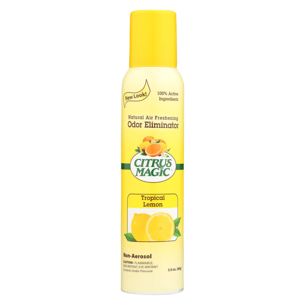 Citrus magic natural air freshening odor eliminator, tropical lemon, is a spray that eliminates odors in the air naturally. We’ve made our air freshener with natural essential citrus oils. Citrus magic doesn’t just cover up or mask unpleasant odors, but it actually eliminates them. Our 100% active ingredients last 4 times longer than ordinary air fresheners to ensure you enjoy a fresh, clean scent. The can is a non-aerosol, bag-on-valve can. Each can contains 3 fl. Oz. Of citrus magic natural air freshening odor eliminator, tropical lemon. See label for warnings.
