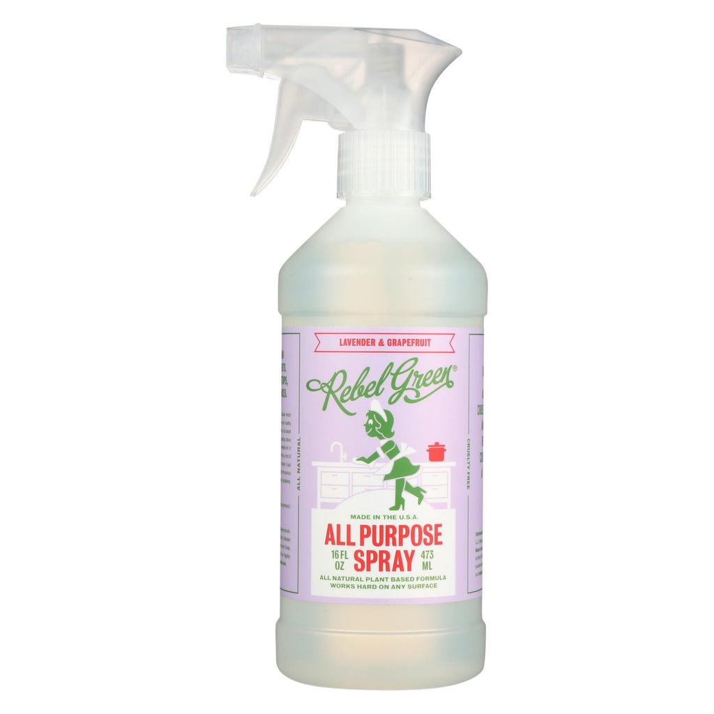 Rebel green's lavender & grapefruit all purpose spray is an all-natural cleaner that's free of petroleum byproducts and never tested on animals. Our bubbly formula smells great and comes in a 25% recycled material bottle with no residual taste and great counter appeal. We don't use any alcohol or chlorine and our formula is kosher, gluten-free and non-toxic. Fruit & veggie clean has been shown to effectively and safely remove significant amounts of surface pesticides, waxes and oils. Included is one 16 oz. Bottle of lavender & grapefruit all purpose spray.
