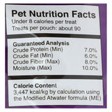 Fruitables dog treats pumpkin blueberry recipe features fresh pumpkin, organic oatmeal, barley, potatoes, blueberries, cinnamon and brown sugar. Every 7 oz. Bag of fruitables dog treats is free of corn, soy and wheat, and we don’t add any artificial ingredients, colors or preservatives. Crunchy, healthy and delicious, fruitables dog treats are made in the u.s.a. See nutrition facts panel for allergens.