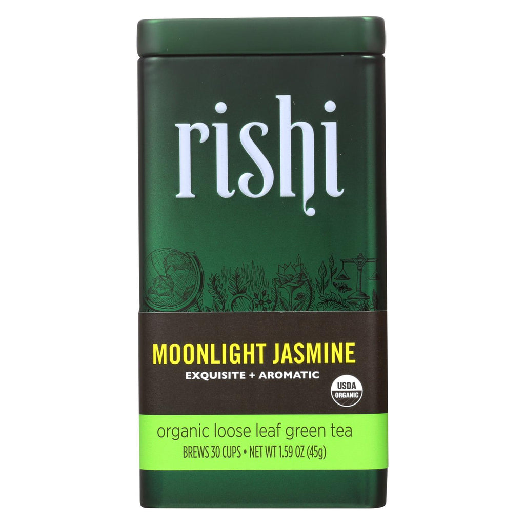 This superior quality rishi moonlight jasmine loose leaf green tea uses less rounds of scenting than jasmine pearl, but is equally beautiful to behold visually and even more stunning in its lush, abundantly aromatic sweetness. This innovative tea is made from pure spring harvest tea buds – the same buds that are typically used to make jasmine pearl – but are left in a natural, slightly twisted shape instead of being rolled into a pearl. The result is a tea with an unimaginably rich sweetness that naturally complements the sweet perfume of jasmine. Because moonlight jasmine is not rolled into a pearl, far fewer rounds of scenting are needed to achieve a deeply fixed floral aroma. Includes one 1.59 oz. Tin of rishi moonlight jasmine loose leaf green tea. We are the vanguard practitioner of tea and botanical arts; a wellspring of adventure to curious tasters like you through devotion to our craft.