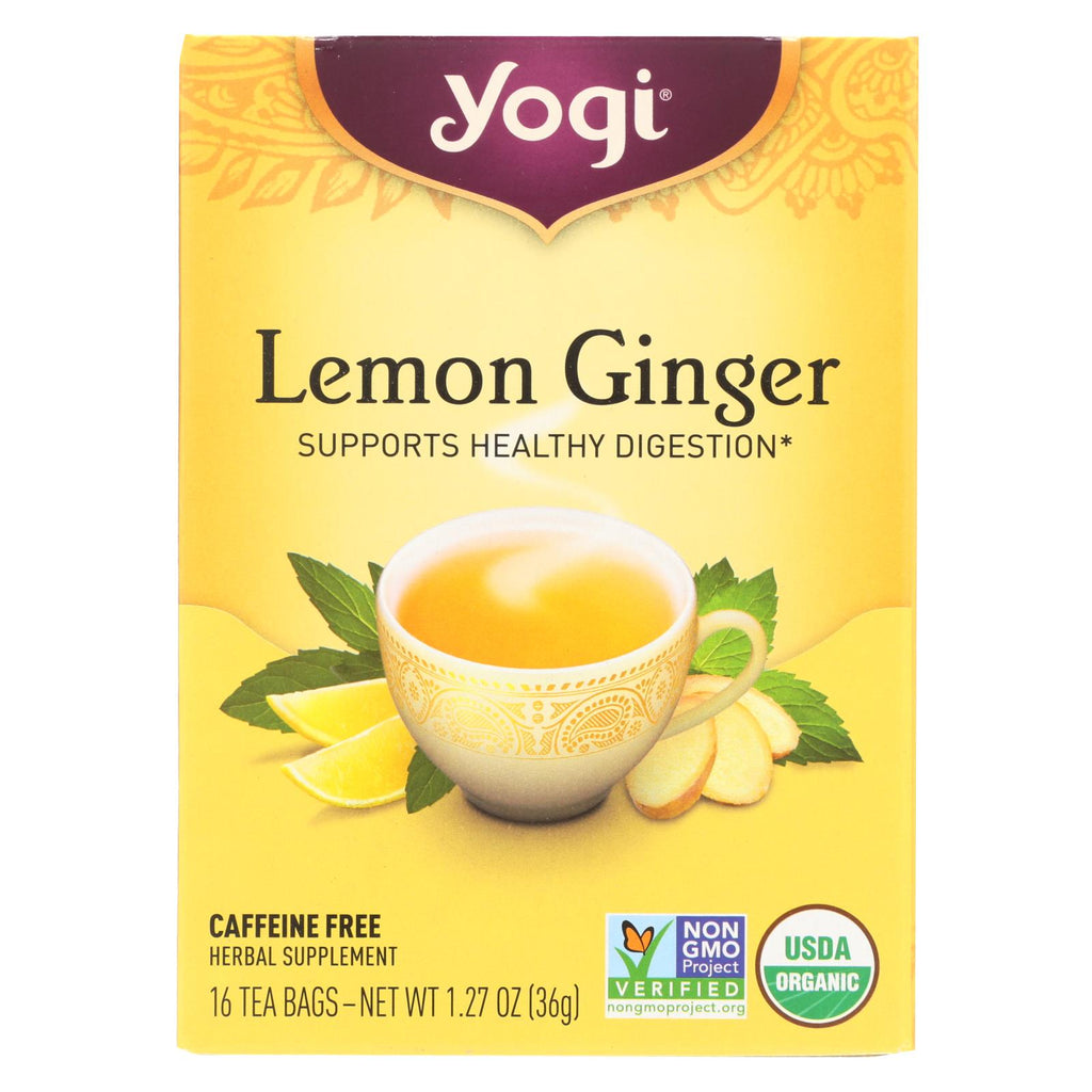 Yogi 100% Natural Herbal Tea Caffeine Free Lemon Ginger - 16 Tea Bags - Case Of 6