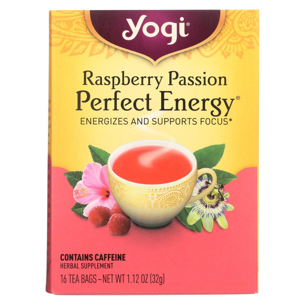 Yogi Perfect Energy Herbal Tea Raspberry Passion - 16 Tea Bags - Case Of 6